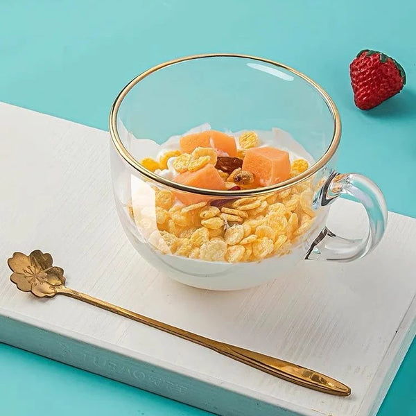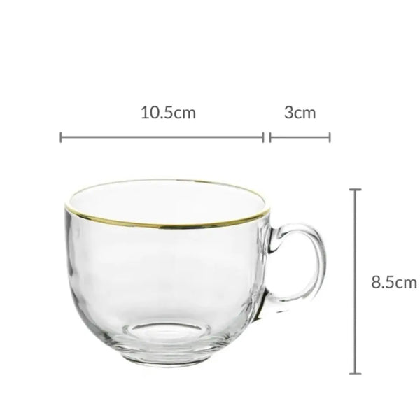 This glass cup with a bangle-like golden edge has a classic design will never run out of style.