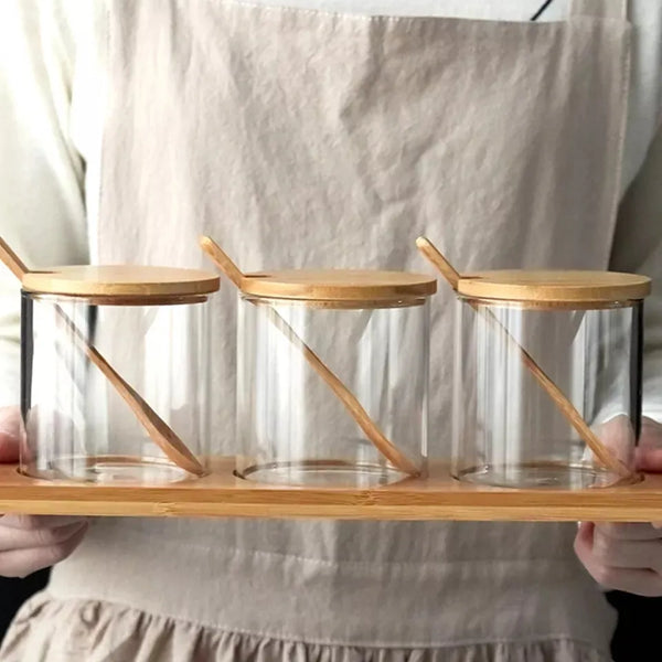 This trio clear spice jar set made of high borosilicate glass is perfect for storing a variety of ingredients including preserves, jams, chutneys, sugar, tea, coffee, herbs, spices.